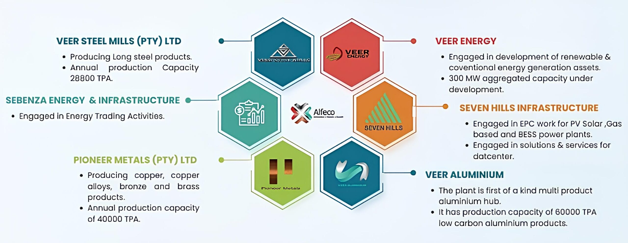 Sevenhills is part of the Alfeco Group, a South African industrial group active in metals beneficiation, renewable energy, and utilities management.